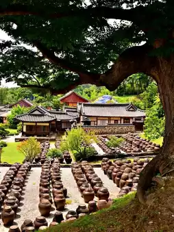Jangdokdae is the traditional Korean fermentation platform—a cornerstone of Korea’s culinary heritage. A jangdokdae is an outdoor raised platform—typically stone or concrete—used to store large earthenware jars (jangdok or onggi) for fermenting and preserving foods like kimchi, doenjang (soybean paste), gochujang (red chili paste), ganjang (soy sauce), grains, and salted seafood. The term combines jangdok (“crock”) and dae (“place” or “stand”)—literally, the “place for jars” .