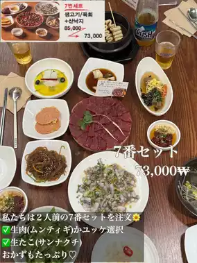 I went with two friends and ordered the 7-piece set for 73,000 won. ✨