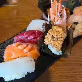 Located near Kyungpook National University Hospital in Dongin-dong, Daegu, MuhwaSikdang is a sushi restaurant that caters to all tastes. For 20,000 won per person, you get a plate of sushi and a mini udon, which is perfect for filling up, and it's also incredibly affordable. The sushi isn't always the same; the menu changes every six weeks. You can sample a variety of ingredients, from flounder, salmon, red sea bream, abalone, and egg sushi, making for a truly enjoyable dining experience. The fish is fresh, and the sashimi is thick, filling your mouth with every bite. The beautifully presented food makes you feel even happier. It's even been recognized as a Blue Ribbon Restaurant, proving its exceptional quality!