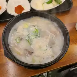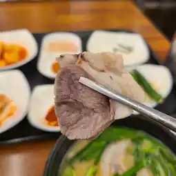 IlpoomDwaejiGukbap is a popular pork soup restaurant near Jungangno Station, perfect for a hearty meal from morning until late at night. The broth, simmered with beef bones, is savory yet clean. The soft texture and chewy texture of the pork head perfectly complement each other, creating a clean, odorless broth. Ordering it with a spicy kick will instantly soothe your stomach, making it a perfect hangover cure. A variety of menus, including sundae gukbap and mixed gukbap, are available to suit your taste. Pairing it with side dishes like kimchi, cubed radish kimchi, chives, and onions further enhances the flavors. With an affordable price range of 7,000 to 9,000 won, and generous portions, it's a great place for a late-night snack.