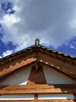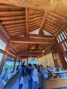 The front building boasts a fresh and unique charm, with a beam marked "February 2, 1919" as a reminder of its history. Large windows allow ample natural light, while the wooden textures create a warm and inviting atmosphere. In addition to seating areas, the window sills are designed like bay windows, where visitors can relax on cushions and enjoy the view of the historic house.
