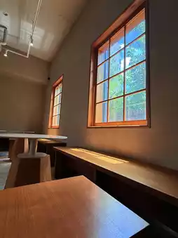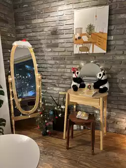 The initial attraction was its logo, featuring a gentleman resembling Sun Yat-sen and an image of red bean bread. Upon entering, a completely different world unfolds. The brick building's large windows let slanting sunlight filter down onto wooden chairs, creating a modern take on a traditional Korean house corner, creating a relaxed and inviting space. On the other side, retro booths lined with red velvet and accented with Ferris wheel lights evoke a popular Western restaurant from the last century.