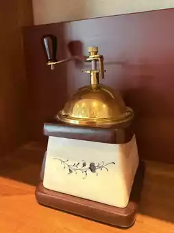 The shop houses a collection of antiques, including a mechanical coffee roaster, an antique porcelain-topped coffee grinder, an old moka pot, and even Soohyungdang, a 1946 establishment known for its apple bread. The shell-encrusted gift boxes create the illusion of stepping back in time.