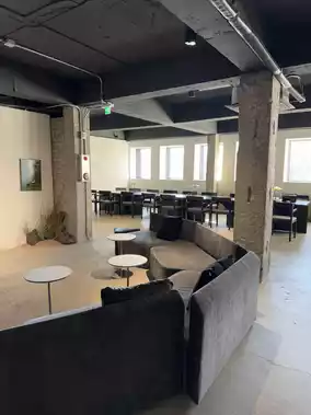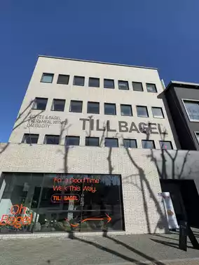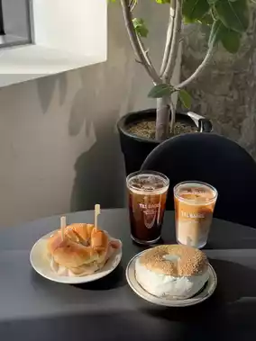 Spanning the first, second, and third floors, you can enjoy bagels and coffee in a spacious space.
