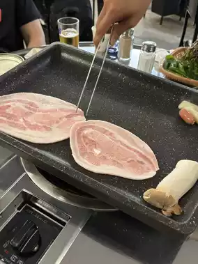 The meat is chewy and delicious, and the other side dishes were the best I've had among frozen pork belly places in Daegu 🥹💗. Highly recommended when traveling to Daegu 👍🏻👍🏻.