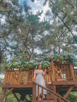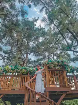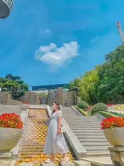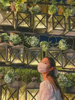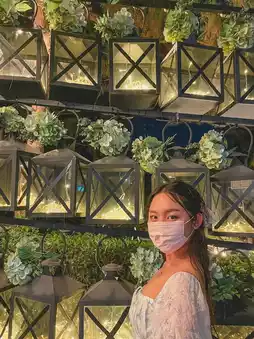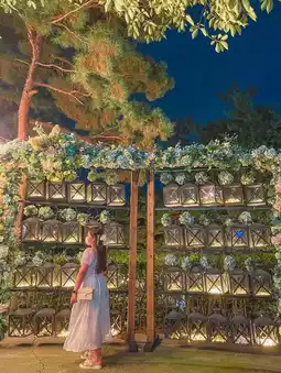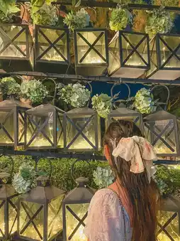 The light bulbs hanging everywhere are diverse and pretty, and the flowers in full bloom are so beautiful..💖