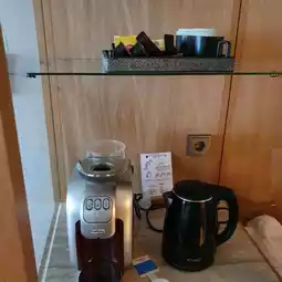 The room condition is clean and good, and it is unique and good that it is a different coffee machine than the common Nespresso.