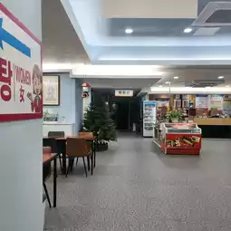 Go to the outside store to eat, or go to the lobby. There are several steam rooms.