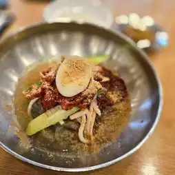 Domestic Travel Daejeon Restaurant ⭐️Seon Kodari Naengmyeon⭐️ is a popular naengmyeon (cold noodle) restaurant located in Daejeon. Known for its spicy sashimi-topped naengmyeon, the restaurant also offers a variety of other dishes such as yukjeon (pan-fried beef) and hanwoo tang (Korean beef soup). The naengmyeon set menu, which includes side dishes like taste dumplings, is particularly popular. It is especially busy during the summer, with waiting lines during lunchtime.