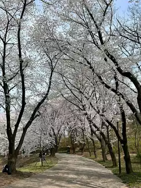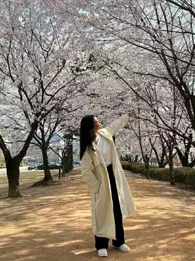 Start your trail at KAIST campus—a surprisingly peaceful blossom spot where trees line quiet walkways filled with students unwinding under petals.