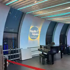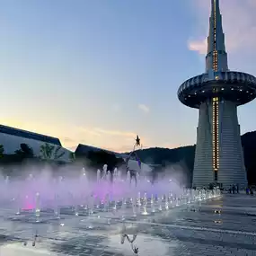 Inspired by science and space, the iconic Hanbit Tower stands tall at 93 meters. In front of the tower, the Water Light Plaza offers a space where visitors can freely splash and play.