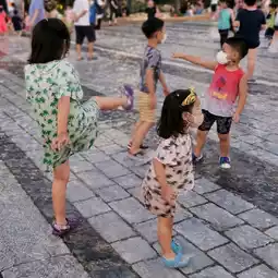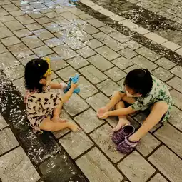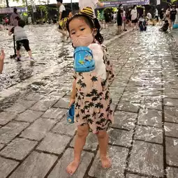 You can escape the heat by playing in the water with your child in the city,