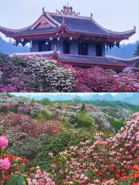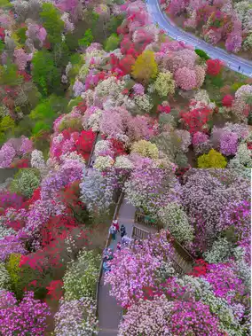 Overlook the azaleas all over the mountains from the Colorful Pavilion, a great spot for taking photos📸, but it's really crowded, probably less now