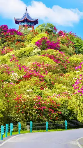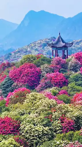 As an important part of Baili Azalea, Fangjia Ping Scenic Area's azaleas bloom from mid-March to early May, with early April being the peak viewing period when the mountains are covered with blooming azaleas, creating the most magnificent scenery.