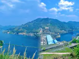 The scenic area was formed after the construction of the Yantan Hydropower Station. The reservoir covers more than 80,000 acres, with clear green waters and vast misty waves. Over a hundred islands and peninsulas are scattered throughout, presenting a variety of shapes and forms. Green trees and blooming flowers embellish the landscape, creating a beautiful and enchanting scene. Numerous water bays are lined with Yao and Zhuang ethnic villages, with each household facing the lake and boats docked at their doors. The fish cages spread across the bays form a 'waterborne home', and the waterside scenery is captivating.