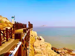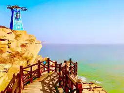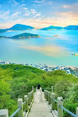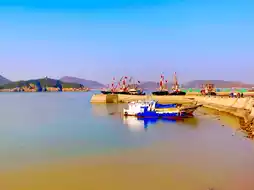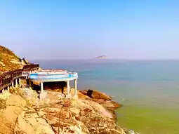 Daishan's Quzhou Island, a romantic and passionate island. The Liangzhi Village on the island, the East Sea style fishing village. Houses are built along the mountain, the beach is delicate and golden, and the sea water is layered. Hand-painted seawall, moored fishing boats. Along the coastal plank road, various strange-shaped reefs, sea water is afraid of hitting. The white lovers' viewing platform, the cape at the corner. The distant wind power viewing platform, the windmill is shaking. White clouds, blue sea, blue sky, everything is so beautiful and harmonious.