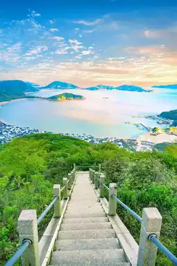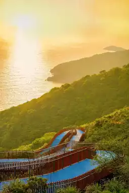 Next to Liangzhi Fishing Village, on the side of the island's mountain, is the most beautiful coastal plank road on Qiushan Island. The mountain is on the left and the sea on the right, making it a great spot to watch the sunrise.