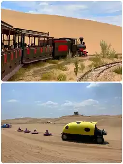 ✨Highlights: One of China's three singing sand deserts❗️“Singing sand”🎵 + desert Disneyland🎢 + lotus-shaped Buddhist hotel🏜️ + Mongolian *Ordos Wedding* show💃!