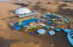 Joy Sand Leisure Island focuses on art and sports. Here, you can watch the "Ordos Wedding" performance and stroll through the sand sculpture park to appreciate the artistic charm of sand. There is also a desert water park covering over 20,000 square meters, featuring four swimming pools of various sizes and numerous water facilities.