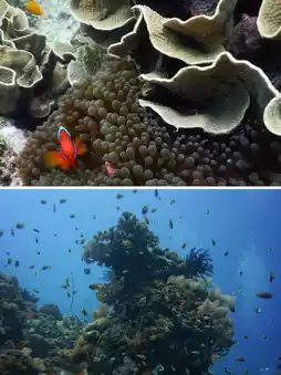 Further ahead of the grassland is a large sandy slope, where underwater creatures such as eels, sea moths, spotted rays, and flatfish, which live in the sand, are hidden. On the left and right sides are coral cliffs with different styles, where you can see various anemone crabs, sea fans and sponges as large as 3–4 meters, and layers of coral reefs covered with colorful soft corals. It's simply breathtaking! If you go diving in Cebu, Philippines, don't miss Dalaguete!