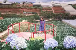 Now the hydrangea garden has increased the fee from 30,000 VND to 100,000 and 60,000 VND for children. You can exchange the ticket for 1 glass of drinking water and there is a corner where you can rent a photoshoot outfit for 100,000 VND. The hydrangea garden is very big, with many corners and many places to sit and rest, and get out of the sun. It is a landmark that you must check in when you come to Dalat. #travel #reviewdalat