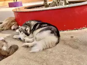 There are many large and small dogs, so you can touch them and play with them, so the kids really, really, really like it!