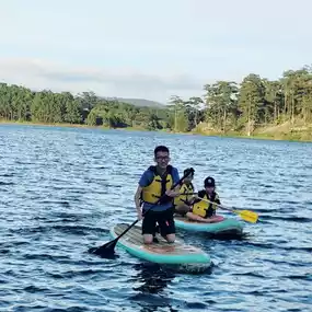 For your curiosity, I am not a water sports player, but after I tried once in playing SUP, I start to falling in love with the feel of rowing on the beautiful Tuyen Lam lake 🥰
