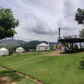 With a fairly large area, the space is very cool, this place is also planted with many trees and flowers, surrounded by mountains and hills, so it makes us feel more relax and comfortable. Coming to Mongo Land, visitors will have moments of relaxation with family and loved ones after hard working days.