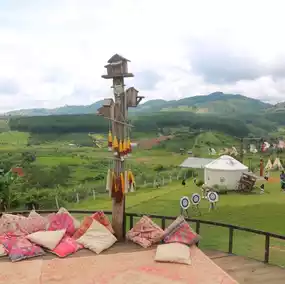 The most impressive thing when entering here, you will be surprised as if you were lost in Europe. Colorful Mongolian tents will be the highlight and attract you from the first time you come here. Miniature Mongolian steppe in the heart of Da Lat; The corner is welcomed by everyone because of its unique features. Here is another corner of the Netherlands. Windmills and green carpets. Create a picture as if you are traveling in Europe.