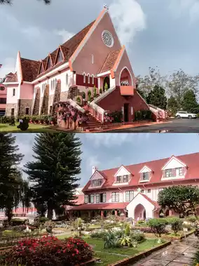 This pink church is a church that almost everyone who visits Dalat must visit. It is a church with a unique design and is bright pink. It is very cute.
