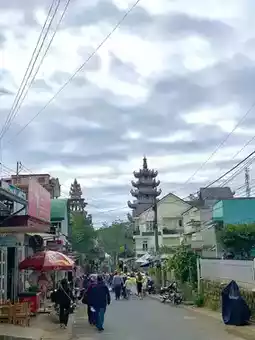 It takes about 30 minutes by train from Da Lat Station to Trai Mat Station. From there, it's about a 5-minute walk to Linh Phuoc Temple.