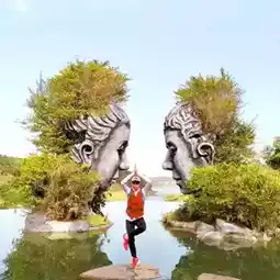 ❤❤❤ The highlight that is recommended and tourists like to take pictures is the point where there is a statue of a person's face facing each other. And we are in the middle of the statue. When looking through the statue in front, you will see a view of the lake.