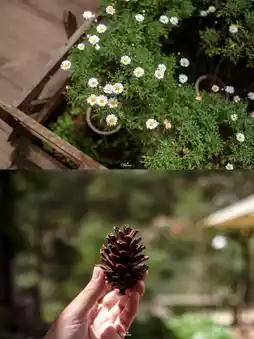 As for the atmosphere in the cafe, I really like it. It's a wooden house with a view of the mountains and the surrounding pine forest. The atmosphere is very good. 🌲🌳