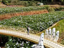 Inside is a very large hydrangea field. I heard that they can be seen all year round. There are also other flower fields mixed in. There is a hand bridge that is a replica of Ba Na Hills for taking pictures. Girls who like taking pictures with flowers will definitely love this place. Guys can also walk around and take pictures.