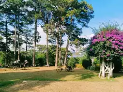- Space: Luxurious, classic Art Deco building, quite quiet, exquisite decoration and thoughtful service. As one of the oldest hotels in Da Lat, it has a history of more than 100 years since 1922. The hotel has a total of 43 guest rooms. The three-story off-white building faces the crescent-shaped Xuanxiang Lake and is located in a fresh green lawn and towering pine forest, with beautiful scenery of lakes and mountains. The hotel houses a collection of 500 Dutch or Impressionist oil paintings copied by Vietnamese painters. Visiting the hotel is like browsing the private gallery of the French Governor. The shiny brown wooden floor creaks when you walk on it. Perhaps those French ladies who once partied every night with silk fans in their hands also walked on it. The meeting rooms and banquet halls in the hotel are all named after French painters, such as: Van Gogh Hall, Cézanne Hall, Monet Hall, etc. There is also a "Rose Study" which is elegantly decorated with fresh rose bouquets, an old phonograph record player, yellowed original book pages, royal hand-painted maps, warm kerosene lanterns... A large number of brass products are used in the room (it is said to effectively reduce the amount of bacteria attached), from the door handle, keyhole cover, light switch, bathtub shower head, washbasin faucet, and even the toilet paper roll holder are made of brass.