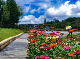 Under the blue sky, the vibrant colors of the flowers will add life to your photos.
