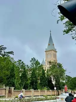 Famous historic church architectural attractions in the center of Dalat, Vietnam: St. Nicholas Cathedral, a Gothic church building, suitable for checking in and taking photos📸