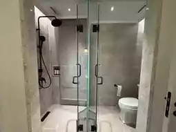 The windows are not tinted, raising concerns about privacy. The bathroom has blinds, so it can't be left open, and the fabric shower curtain retains odors, which was quite unpleasant. Additionally, there is no elevator, which can be inconvenient when moving luggage.