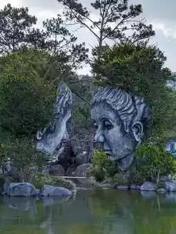 🕌 This garden is filled with stunning flowers and artwork. One of its most striking features is the two giant stone faces that appear to be staring at each other across a small stream, perfect for Instagram and Reel posts. Other notable sculptures include a giant violin, musical notes carved into the rock, and a playful monkey raising its hand in the peace sign. 👍🏻👍🏻 One zone features a bronze statue of a romantic dancing couple, while another features a rustic wooden cafe that feels like a fairytale forest. The garden meanders through pine trees, showcasing everything from dragons and unicorns to life-size model airplanes and artistic paintings depicting Vietnamese history and culture. 🥰👍🏻 There are plenty of beautiful photo spots, perfect for anyone looking to capture memorable moments. The tunnel itself is beautiful and atmospheric, and the surrounding area is equally stunning. Whether you're a photography enthusiast, an art lover, or just looking for a fun place to visit in Dalat, this place will not disappoint. 👍🏻👍🏻 We recommend allowing 60-90 minutes to fully explore and take photos. It's a surprisingly unique, creative, and profound experience. Even on a rainy day, it's definitely worth a visit.