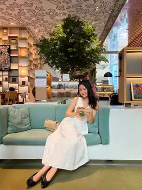 📖 Blue Dream Bread steps in and you immediately feel the warm Nordic vibe: yellow lights, rustic wood and the scent of freshly baked bread filling the air 🌿. The shop is not too big but extremely cute, it feels like you're lost in a bakery in a fairy tale.
