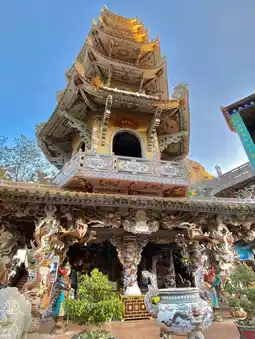 Lingfu temple is a must visit in Dalat, Vietnam. The architecture and details are incredible, doubtless it was the most stunning temple that we visited in the city. The temple is about 10 minutes away from the train station. Although we rented a motorbike to explore the whole city, which was very convenient and cheap.