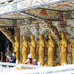 The highlight here is the pagoda and the temple decorated with broken glass and broken tiles, making it look sparkling and beautiful.