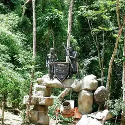 DatanLa Waterfall After we took the Coaster down, we saw the waterfall atmosphere and various photo spots decorated. The waterfall is quite cloudy, but it's strangely beautiful. We saw that there was a cliff climbing activity, using ropes to swing down to the waterfall.