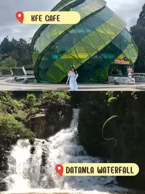🌲 We rode to Datanla Waterfall. It will take a while. There is a roller coaster ride. It costs an additional 200 baht. Below, there is a cafe, restaurant, and a photo corner. ⚠️⚠️ If you don't want to spend money, you can walk down. But I must say that it is very tiring.