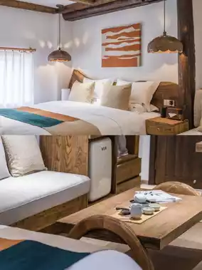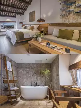 🌿Walking into Yufeng Xiaoyuan, it seems to be in the scene of the TV series "Go to the Windy Place" in an instant. The courtyard retains the layout and details of the drama, and the rooms of Red Bean, Teacher Hu, and Barley, and the place where Grandpa Ma meditates are all reproduced. The courtyard is divided into two parts, one part is the courtyard where Xu Hongdou lived in the drama, which has now been converted into a coffee bar; the other part is the guest room area, with a total of six rooms, each with its own style. Room 1 has a separate terrace, rooms 8 and 6 share a terrace, and the terrace of room 6 is larger, while rooms 5 and 3 are in a wooden building.
