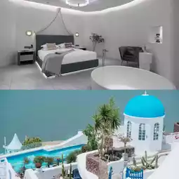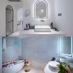🍀 The hotel is in the Haidong Ideal State community, which is called "Dali Santorini" by netizens. The entire building complex is mainly white, with 115 sea view courtyards. The design style is Greek minimalist style. 🍀 The room space is also well utilized with a cave design style!