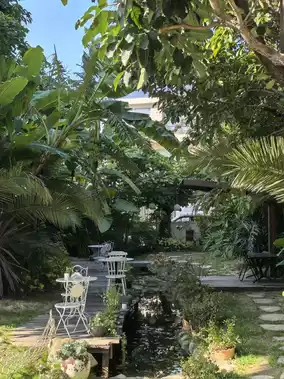 Walking into the hotel is like entering a private garden world.
