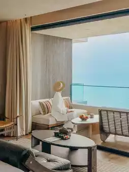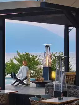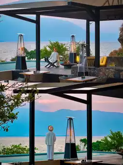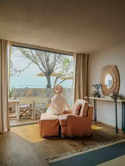 The waves write the sonnet of light 📜 outside the glass of the terrace