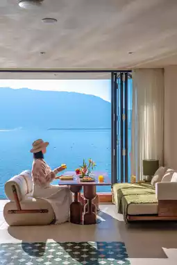 With the mountains and waters in view, the room offers such a wide perspective.