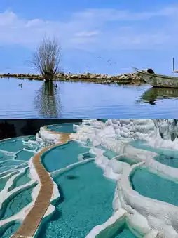- The pure white terraced fields reflect the blue sky, like a fairyland, the Dali version of "Pamukkale."